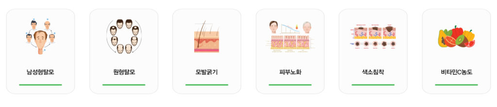 남성형 탈모, 원형 탈모, 모발 굵기, 피부 노화, 색소 침착, 비타민 C 농도 등 미용과 외모 관리를 위한 유전자 검사