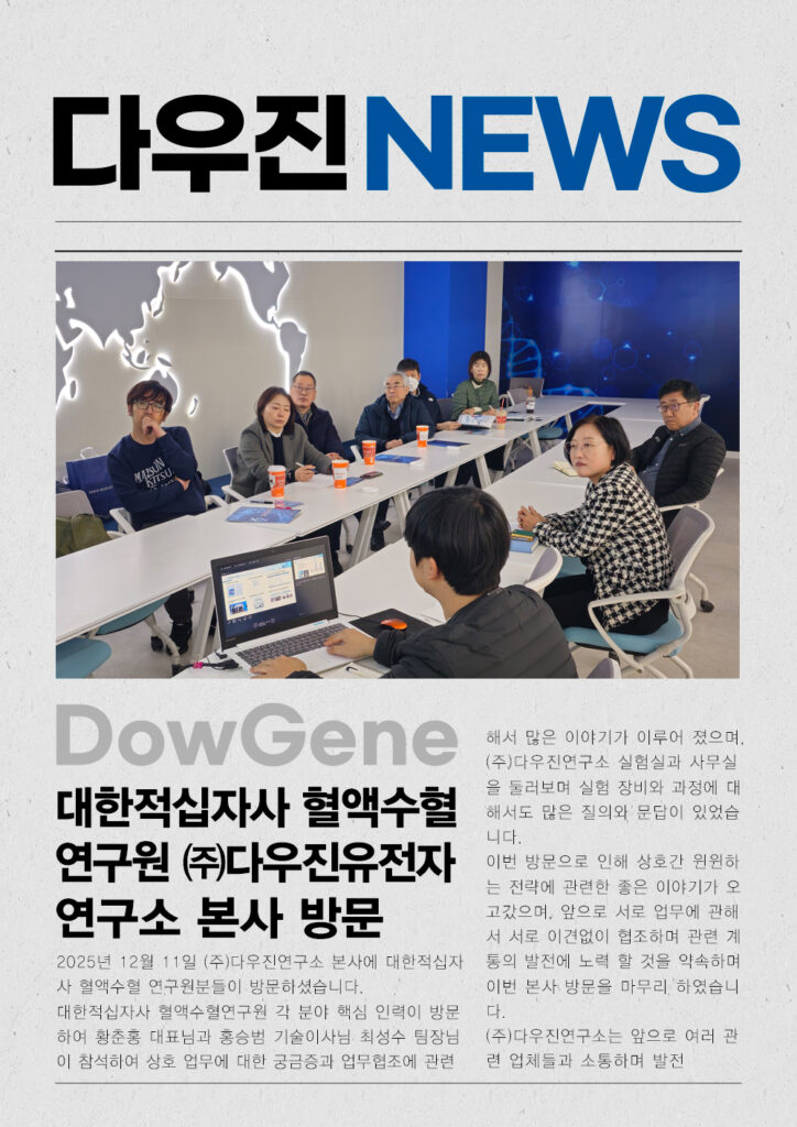 " 2025년 12월 11일 (주)다우진유전자연구소 본사에 대한적십자사 혈액수혈 연구원분들이 방문하셨습니다. "